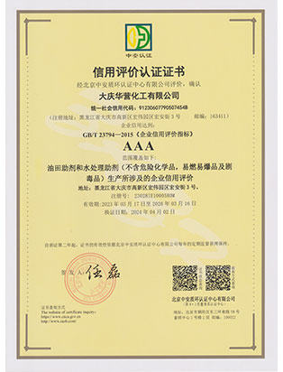 大慶華營化工有限公司成立于2006年7月10日,注冊資金3300萬元,公司類型為有限責任公司。位于大慶高新技術產(chǎn)業(yè)開發(fā)區(qū)宏偉園區(qū),是一家集油田助劑產(chǎn)品的研發(fā)、生產(chǎn)、銷售和技術服務為一體的現(xiàn)代化高新技術企業(yè)。公司注重科技創(chuàng)新,公司擁有18項自主知識產(chǎn)權。企業(yè)承擔過國家火炬計劃重點項目、國家科技型中小企業(yè)創(chuàng)新項目等,2011年被科技部火炬高新技術產(chǎn)業(yè)開發(fā)中心評為國家火炬計劃重點高新技術企業(yè)。公司十余種產(chǎn)品獲得中國石油天然氣集團公司產(chǎn)品質(zhì)量認可證書,其中粘穩(wěn)型驅(qū)油劑獲國家火炬計劃重點項目證書。公司憑借多年對大慶油田及周邊油田地質(zhì)情況的研究,可針對各油田地層特點調(diào)整產(chǎn)品的配方,更好地發(fā)揮各類油田助劑的性能。